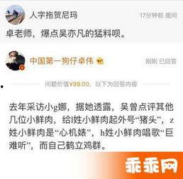 最近娱乐圈可是热闹非凡呢!这不,著名狗仔卓伟又放大招了,他这次可是瞄准了娱乐圈里的小鲜肉们。咱们就来聊聊卓伟最新爆料的这位小鲜肉,看看他究竟有什么料能让我们这些吃瓜群众兴奋不已!